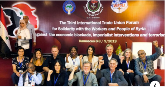 *Featured Image: Members of Syria Solidarity Movement with friends at a Labor Conference to address the issue of Sanctions in Damascus in September 2019